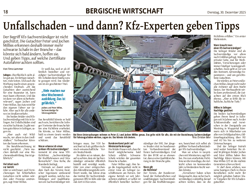 Der Begriff Kfz-Sachverständiger ist nicht geschützt. Die Gutachter Peter und Jochen Millies erkennen deshalb immer mehr schwarze Schafe in der Branche...